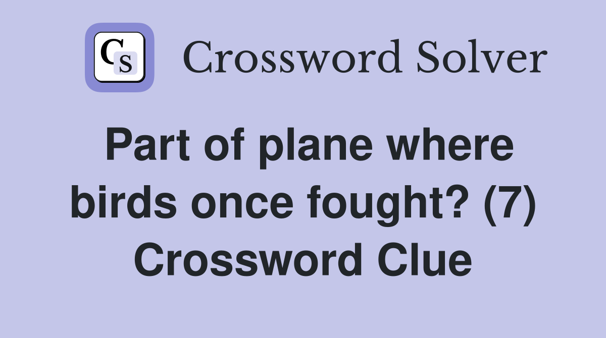 Part of plane where birds once fought? (7) Crossword Clue Answers