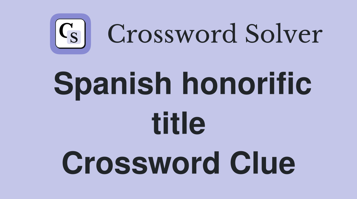 Spanish honorific title Crossword Clue Answers Crossword Solver