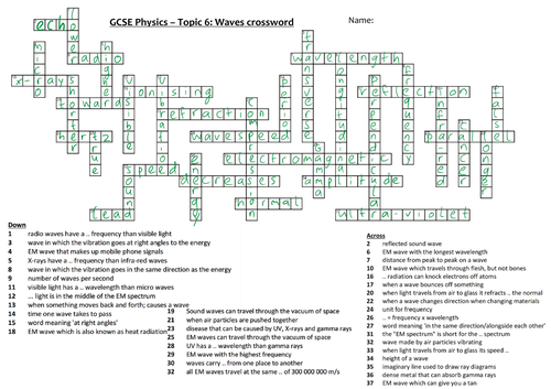 AQA 9 1 GCSE Science/Physics Waves crossword (Combined) Teaching