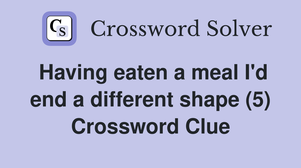 Having eaten a meal I #39 d end a different shape (5) Crossword Clue