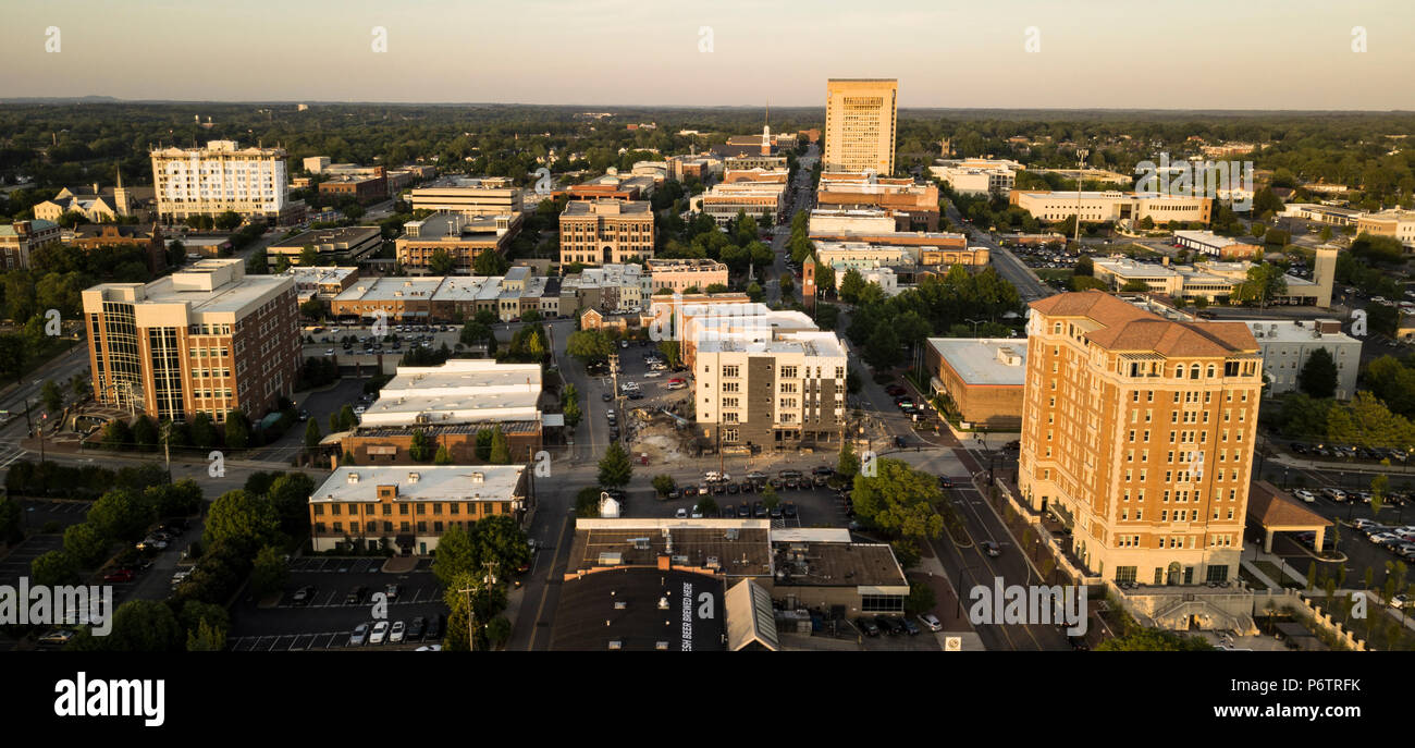 Drone Aerial of Downtown Spartanburg South Carolina SC Skyline