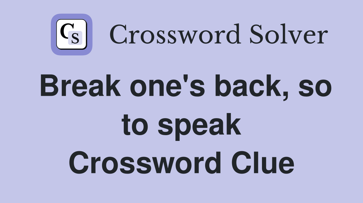 Break one #39 s back so to speak Crossword Clue Answers Crossword Solver