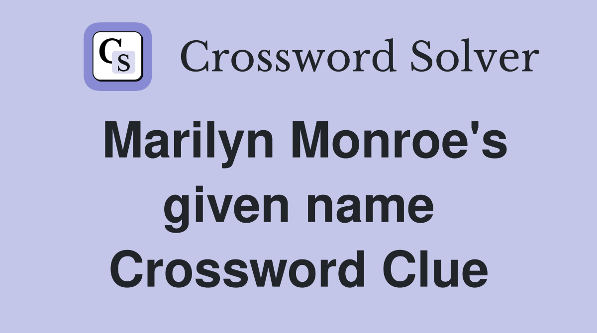 Marilyn Monroe s given name Crossword Clue Answers Crossword Solver
