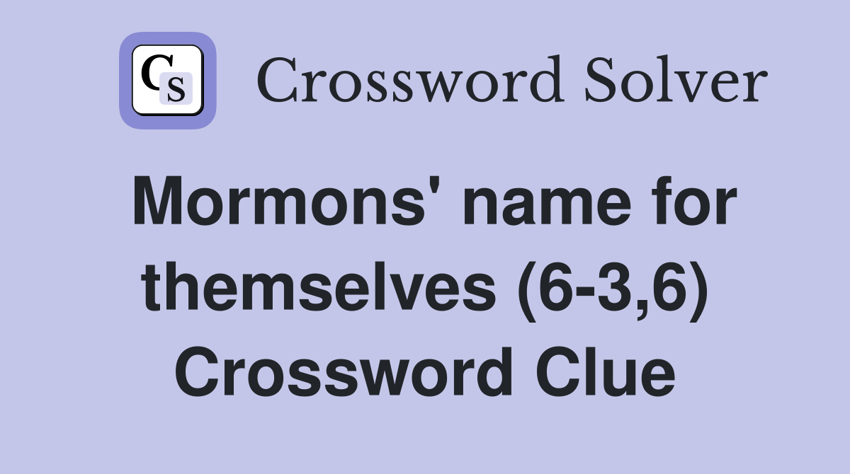 Mormons name for themselves (6 3 6) Crossword Clue Answers