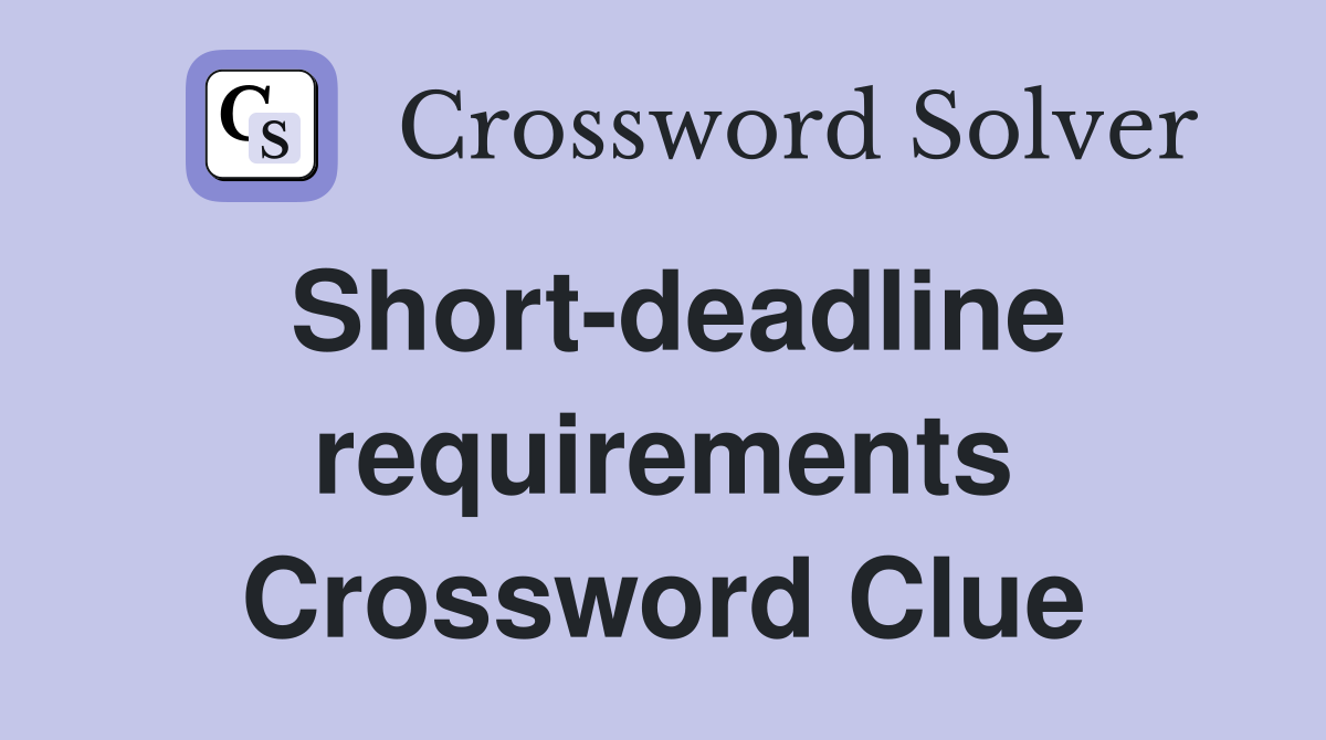 Short deadline requirements Crossword Clue Answers Crossword Solver