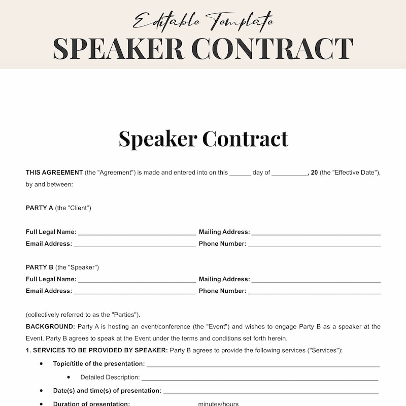 Free Administration Meeting Speaker Contract Template to Edit Online