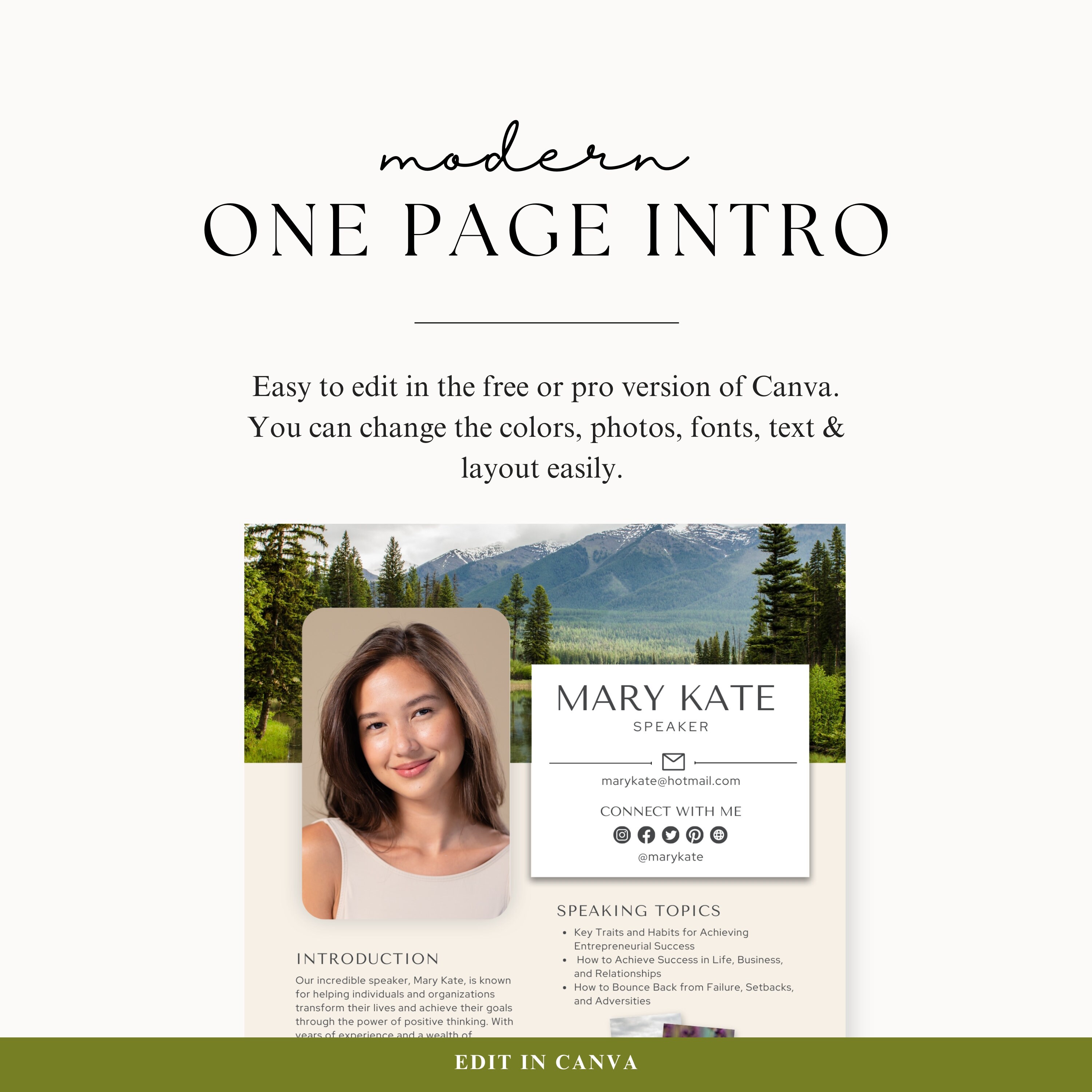 Speaker One Sheet (Canva) Template Create Your Speaker Sheet