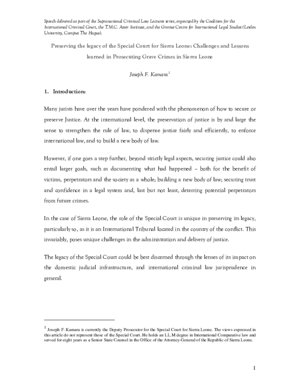 (PDF) Preserving the Legacy of the Special Court for Sierra Leone
