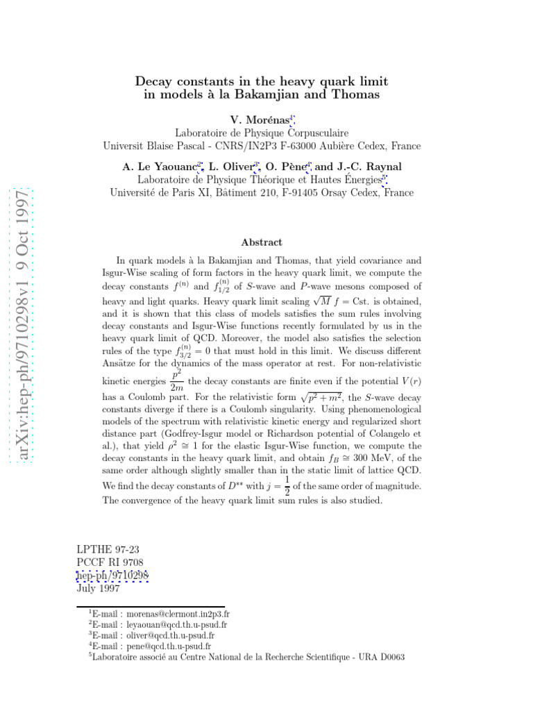 Decay Constants in The Heavy Quark Limit in Models #39 A La Bakamjian and