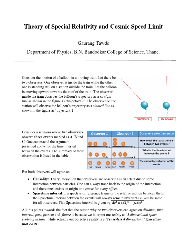 Mr gaurangTawde Cosmic Speed Limit PDF Special Relativity Speed