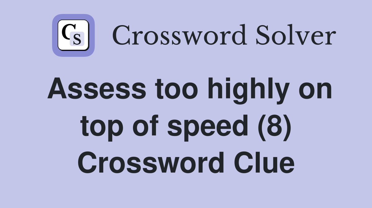 Assess too highly on top of speed (8) Crossword Clue Answers
