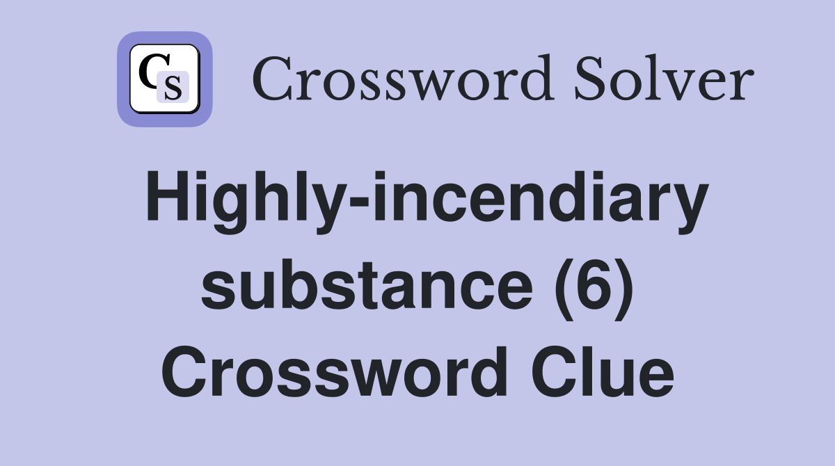 Highly incendiary substance (6) Crossword Clue Answers Crossword Solver