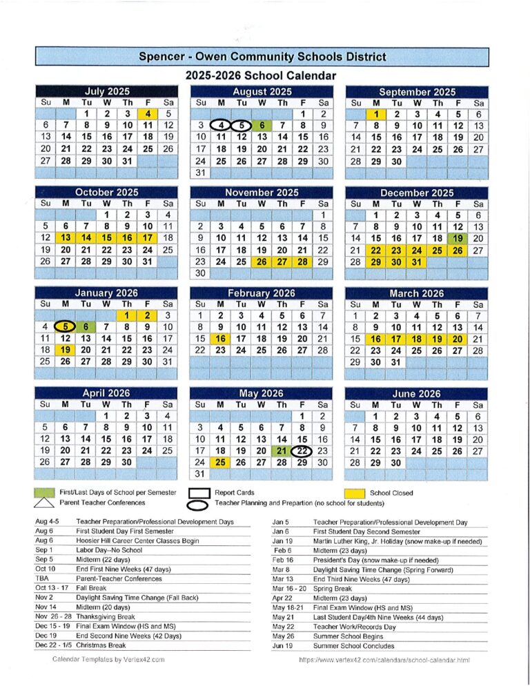 Spencer Owen Community Schools Calendar 25 26 Revised pdf EduCounty