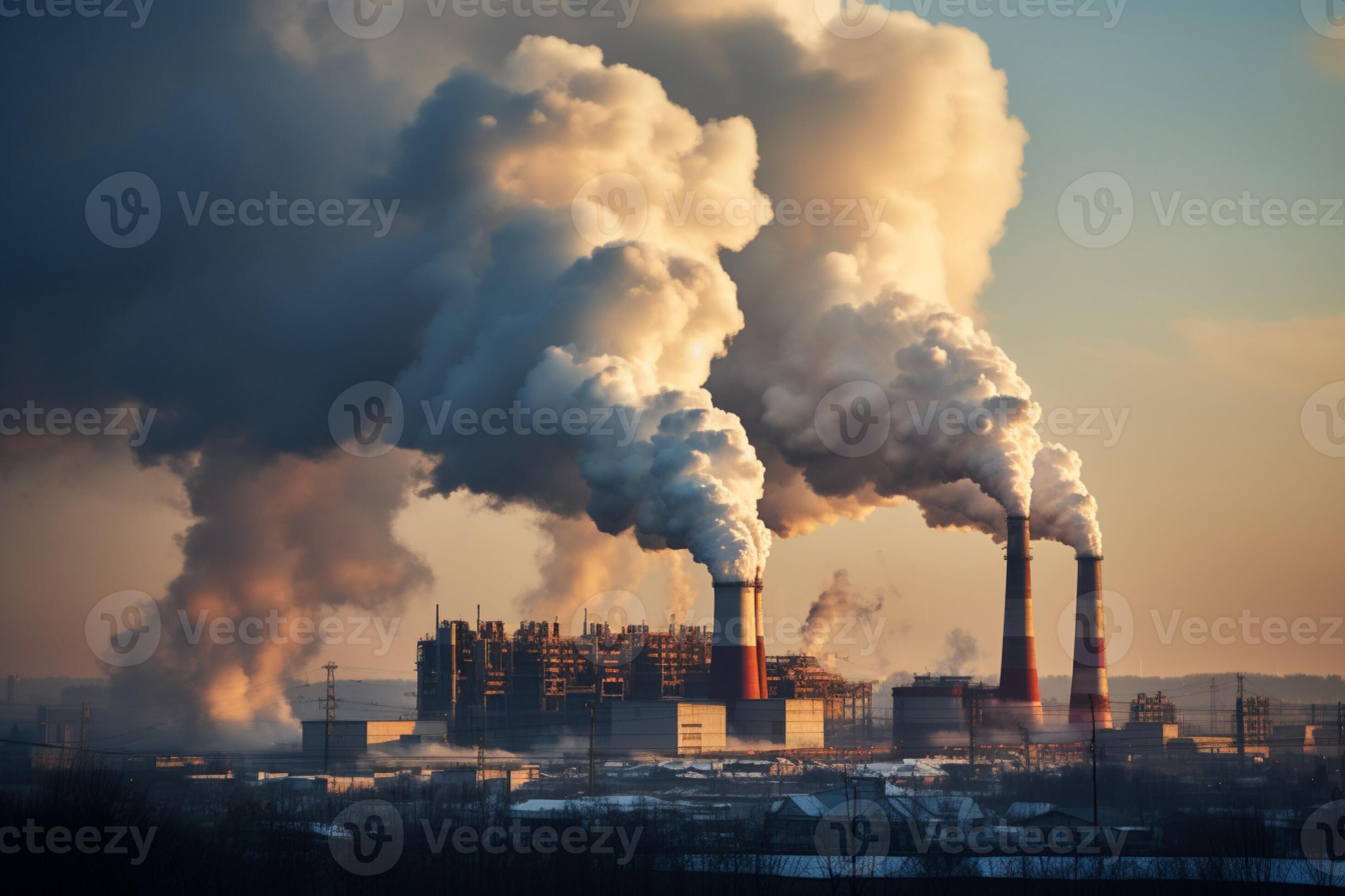Factory chimneys spew smoky haze industrial zones air pollution chokes