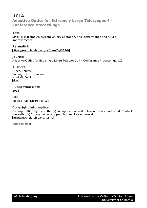 (PDF) SPHERE extreme AO system On sky operation final performance and