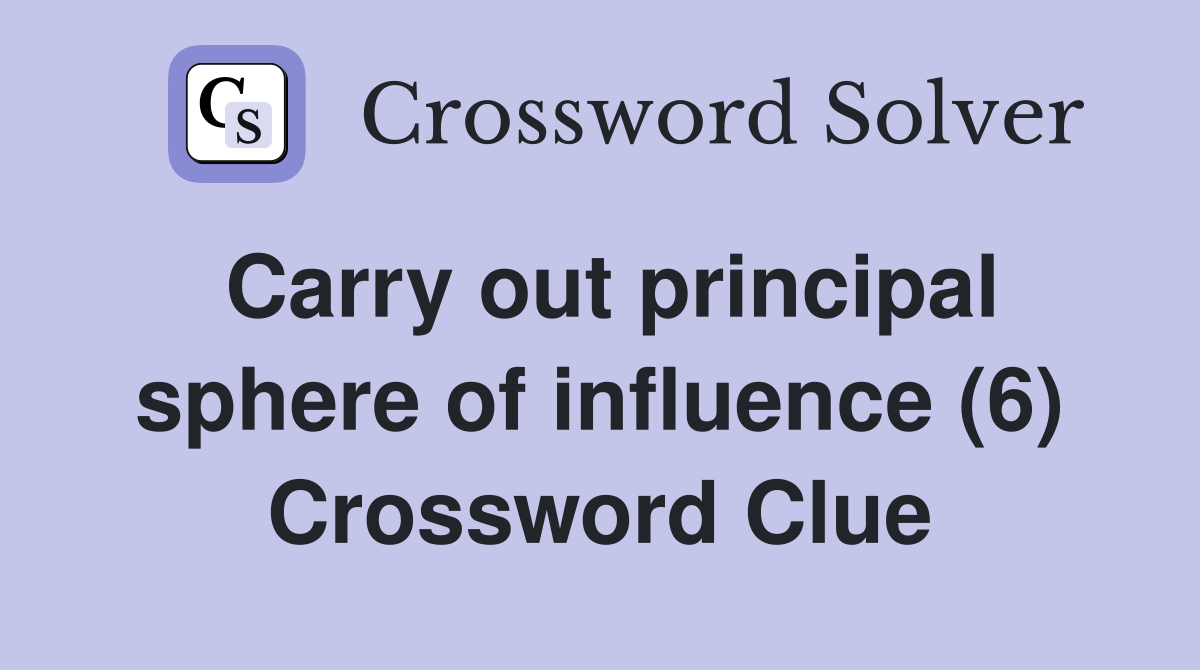 Carry out principal sphere of influence (6) Crossword Clue Answers