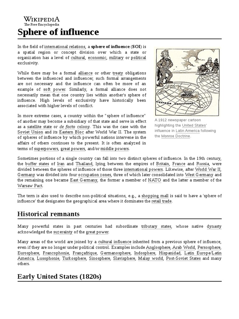 Here are some of the images for Sphere Of Operation Or Influence Crossword Clue that we found in our website database.