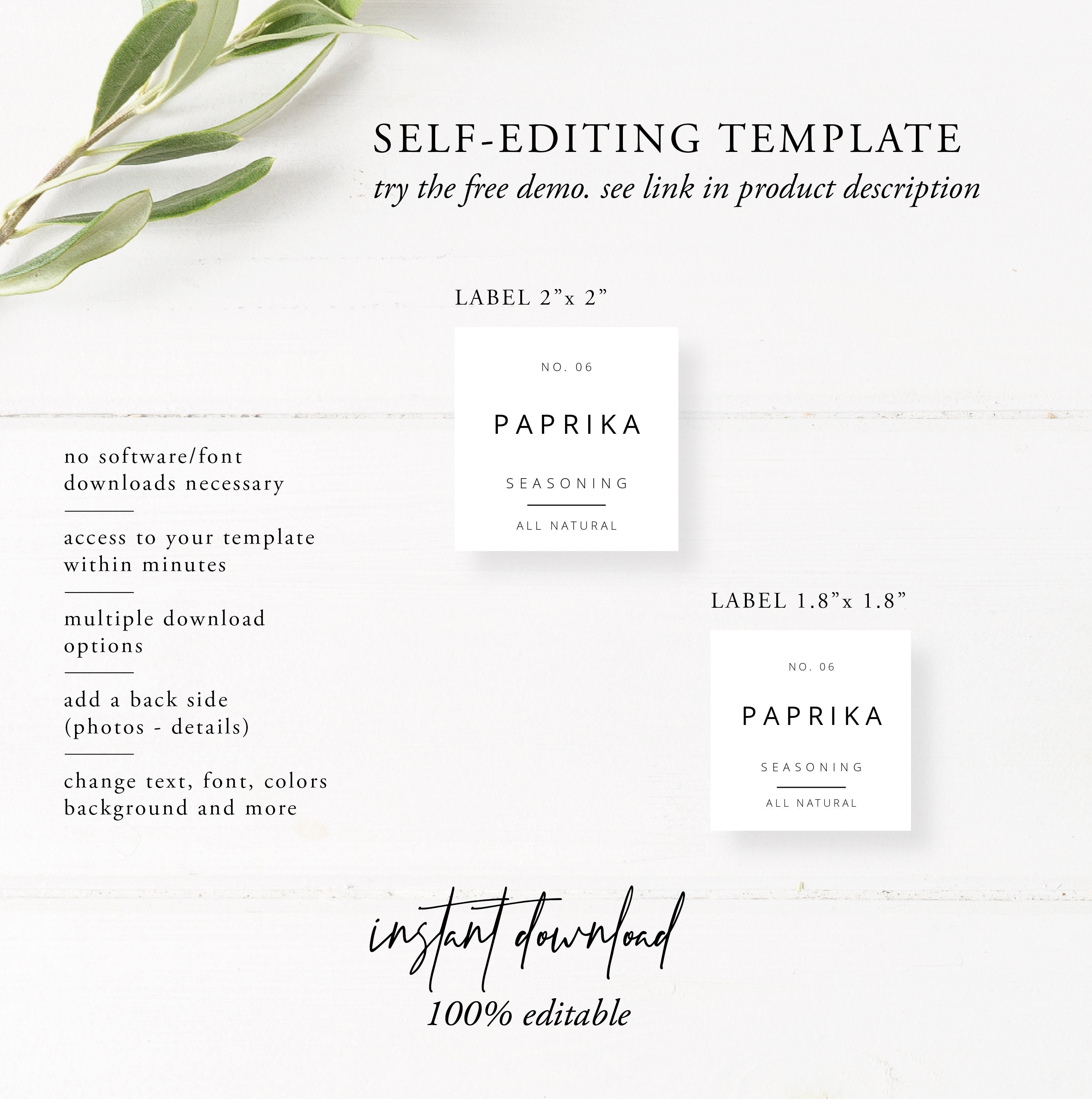 Spice Jar Labels Template Modern Minimalist Spice Jar Label Etsy