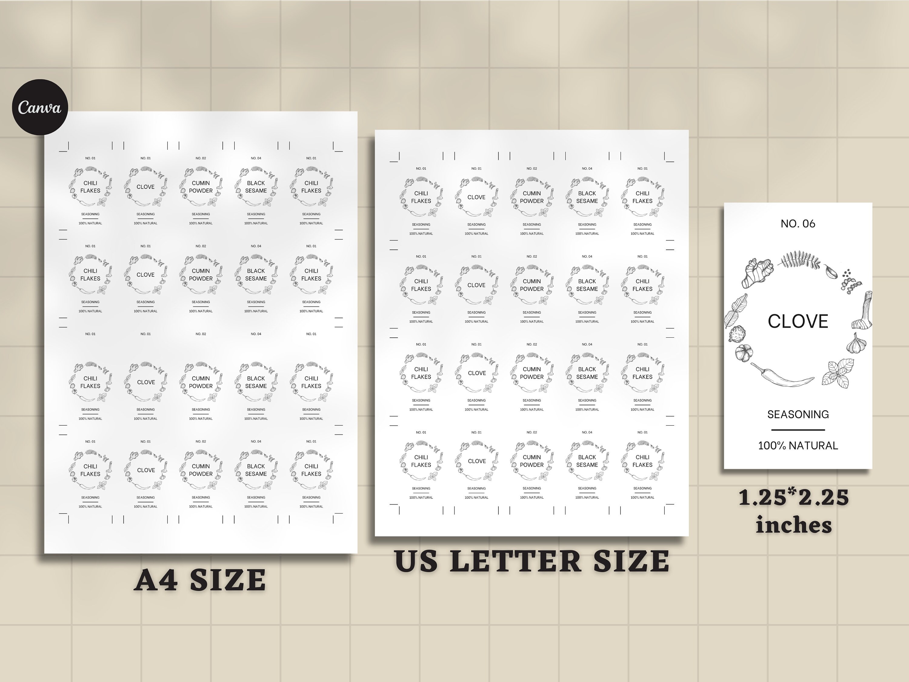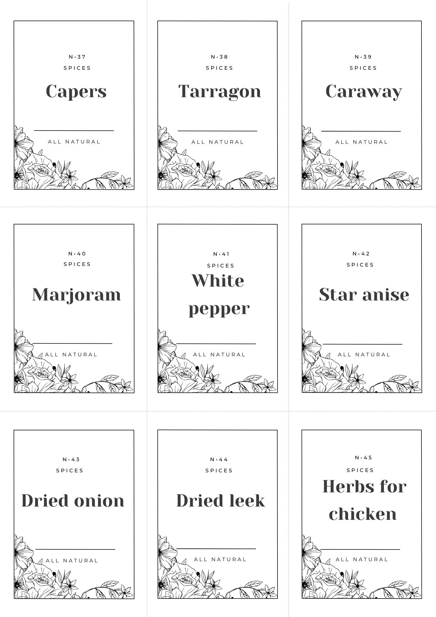 Spice Labels for Jar PDF Template Kitchen Decor Digital Printable Etsy