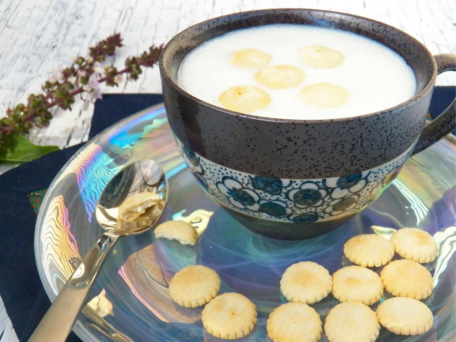 HOT SWEETENED CONDENSED MILK DRINK AND CRACKERS In Good Flavor