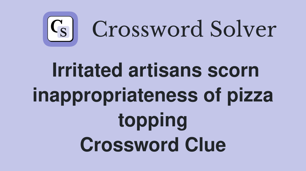 Irritated artisans scorn inappropriateness of pizza topping Crossword