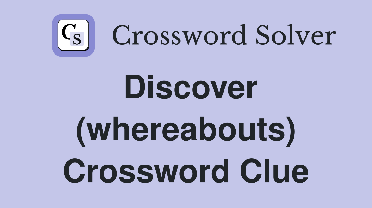 Discover (whereabouts) Crossword Clue Answers Crossword Solver