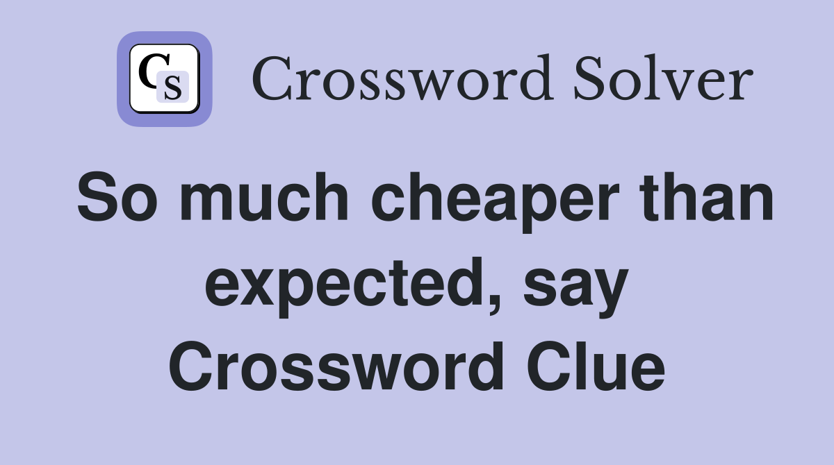 So much cheaper than expected say Crossword Clue Answers Crossword