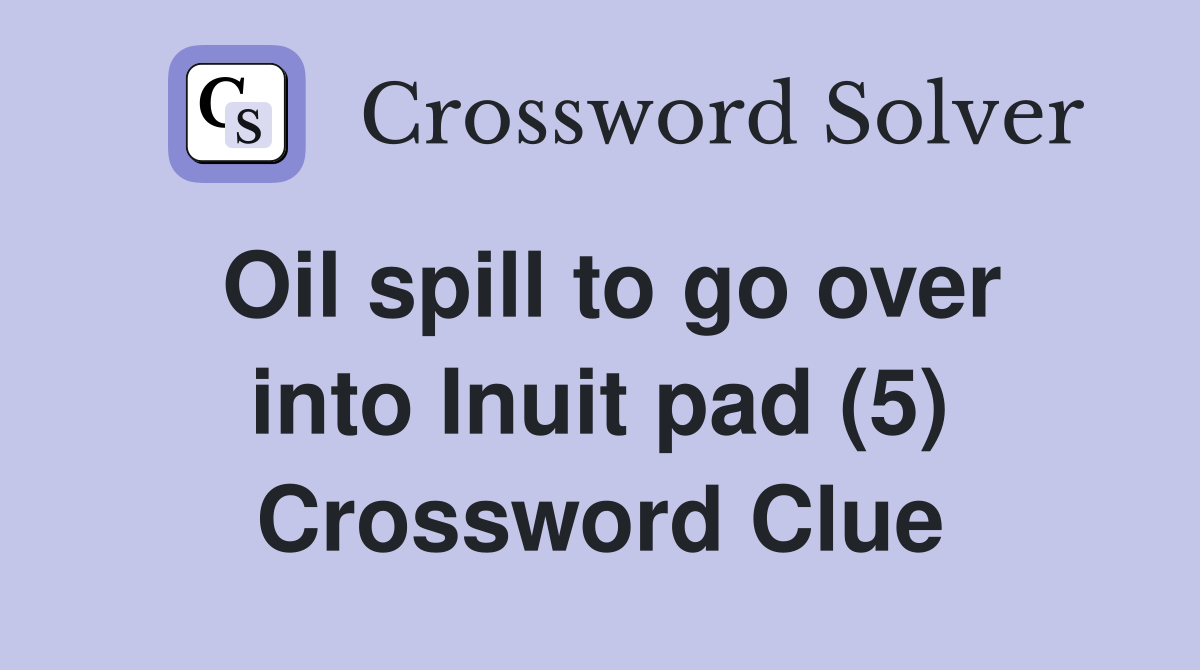 Oil spill to go over into Inuit pad (5) Crossword Clue Answers
