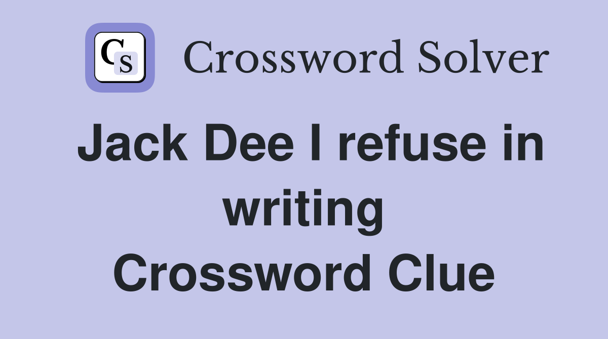 Jack Dee I refuse in writing Crossword Clue Answers Crossword Solver