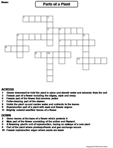 Parts of a Plant Crossword Puzzle by ScienceSpot Teaching Resources Tes