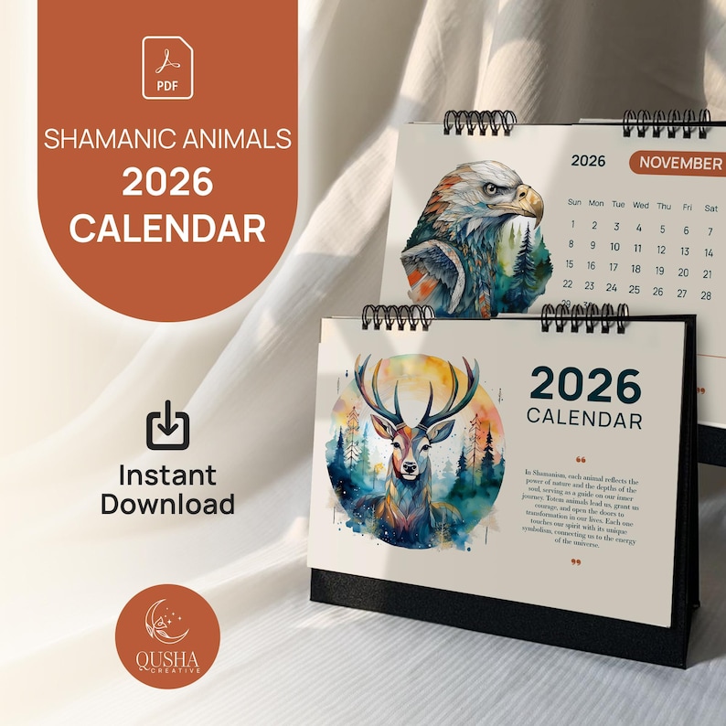 Shamanic Spirit Animal Calendar 2026: Mystical Totem Guide (digital PDF