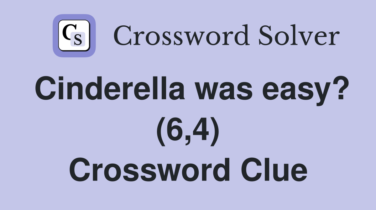 Cinderella was easy? (6 4) Crossword Clue Answers Crossword Solver