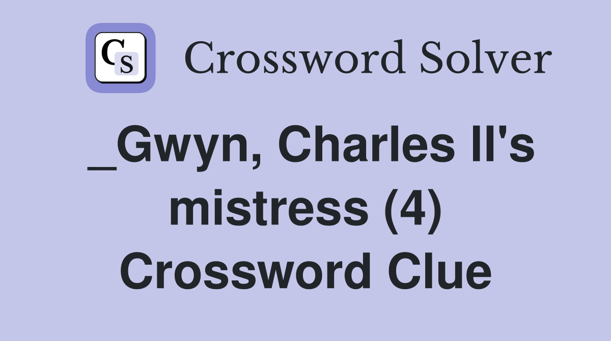 Gwyn Charles ll #39 s mistress (4) Crossword Clue Answers Crossword