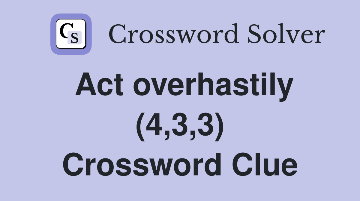Act overhastily (4 3 3) Crossword Clue Answers Crossword Solver