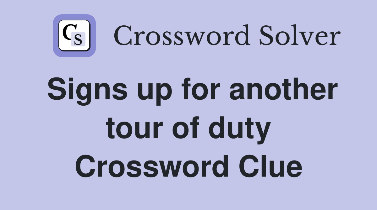 Signs up for another tour of duty Crossword Clue Answers Crossword