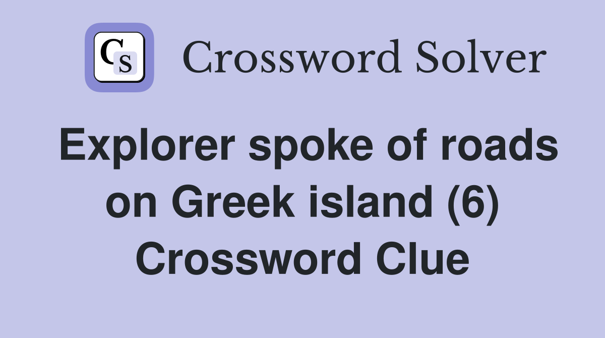 Explorer spoke of roads on Greek island (6) Crossword Clue Answers
