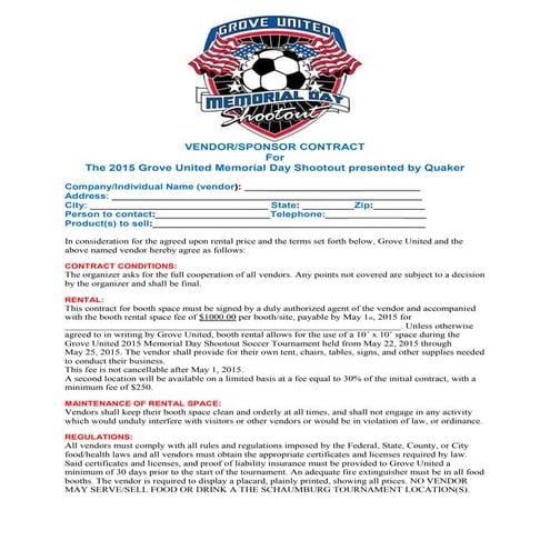 Grove United Vendor/Sponsor Contract PDF