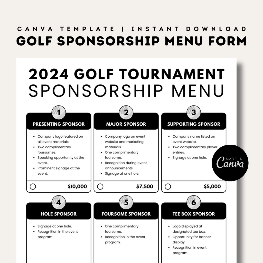 Golf Event Sponsorship Menu Editable Canva Template Fundraiser Sponsor