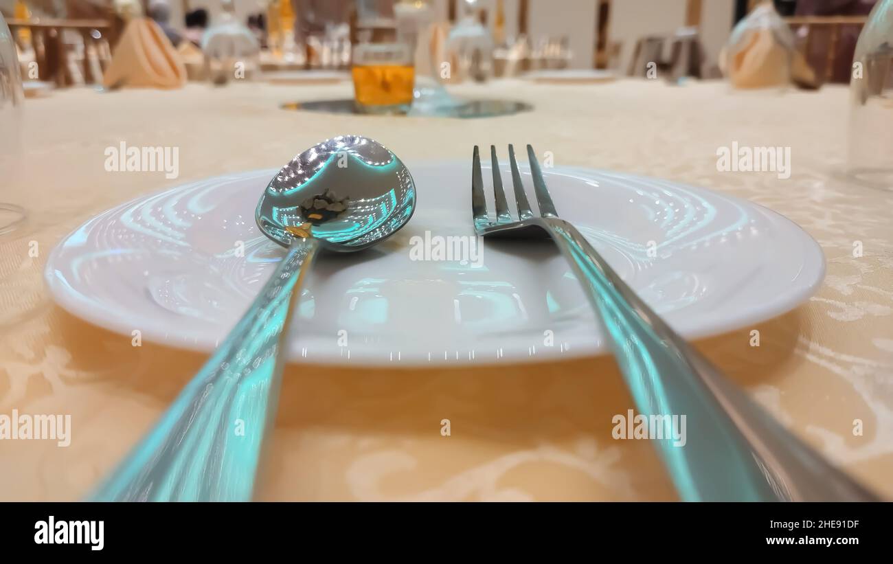 Löffel und Gabel für Symbolsymbol für Logo Piktogramm oder