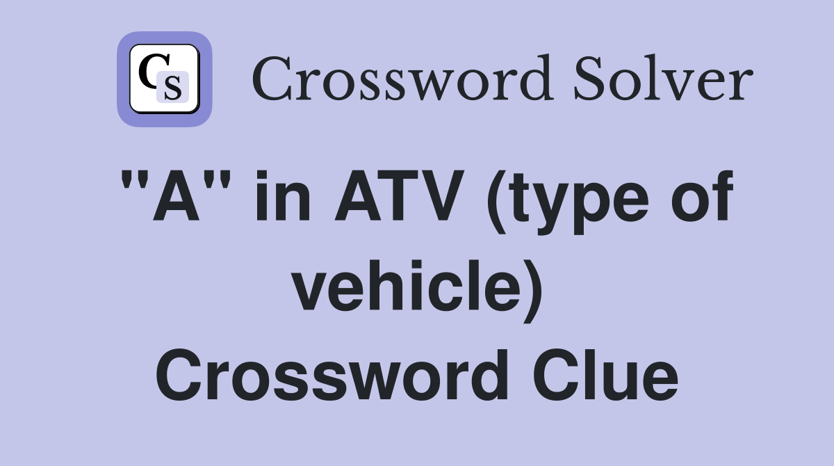 quot A quot in ATV (type of vehicle) Crossword Clue Answers Crossword Solver