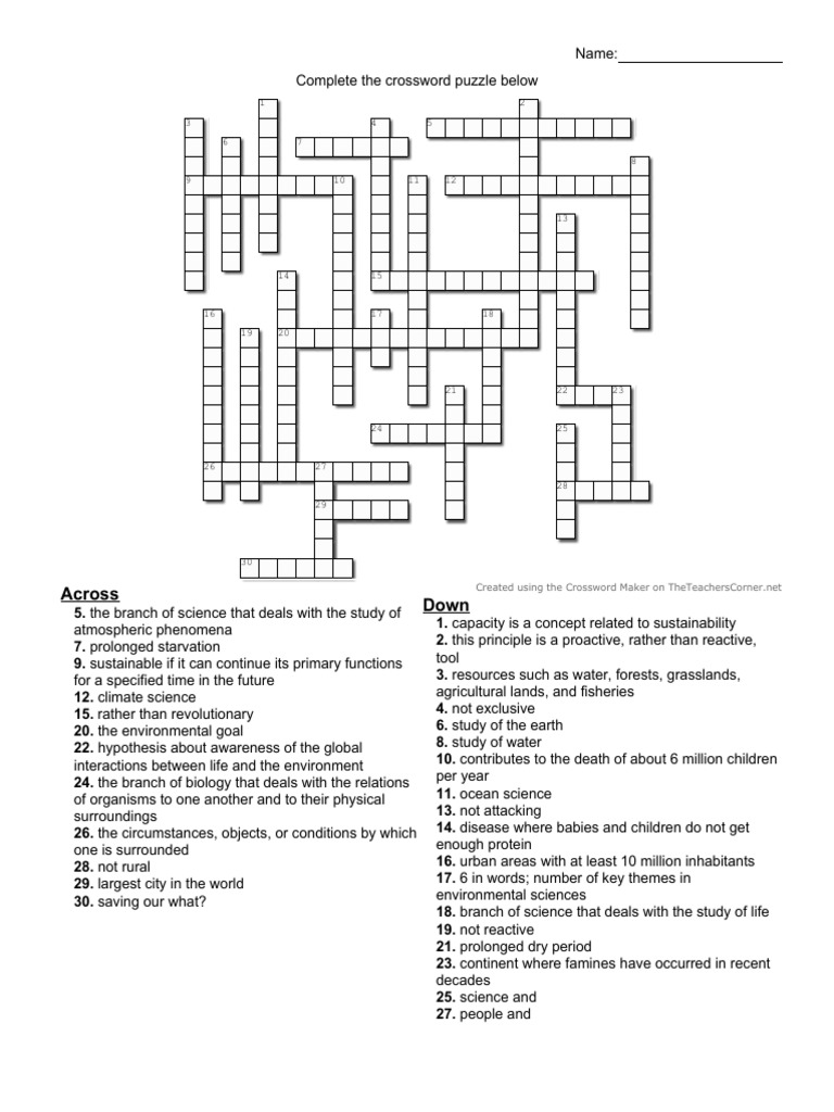 Environmental Crossword Crossword Earth day worksheets Earth day