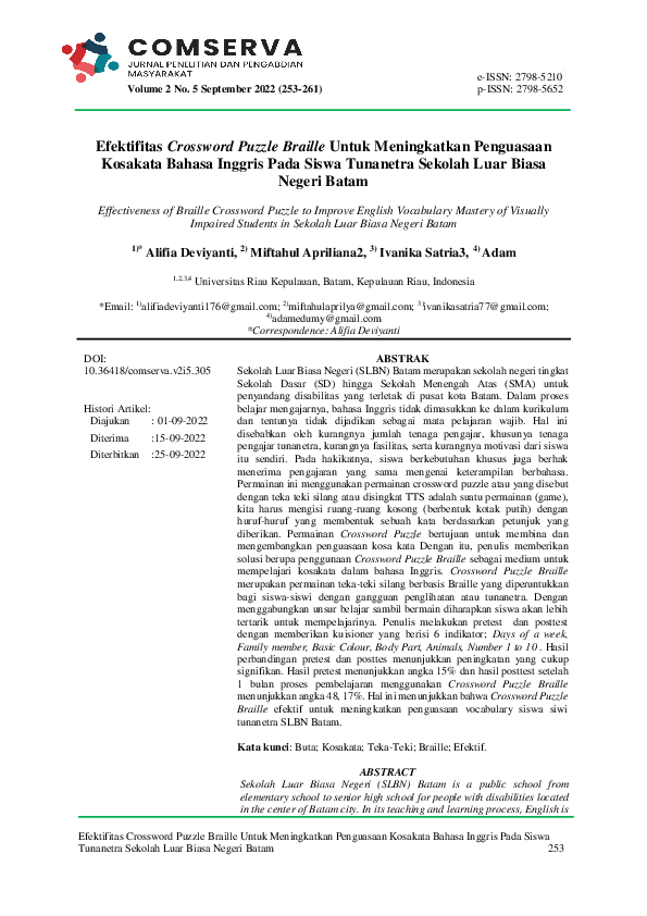(PDF) Efektifitas Crossword Puzzle Braille Untuk Meningkatkan
