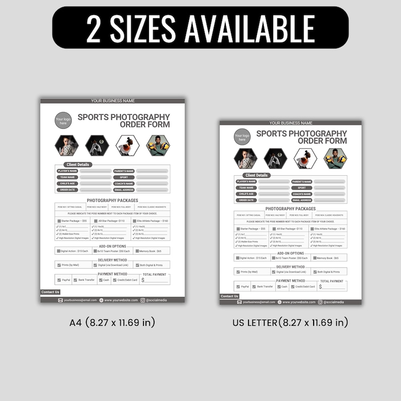 Sports Photography Order Form Custom Template Digital Etsy