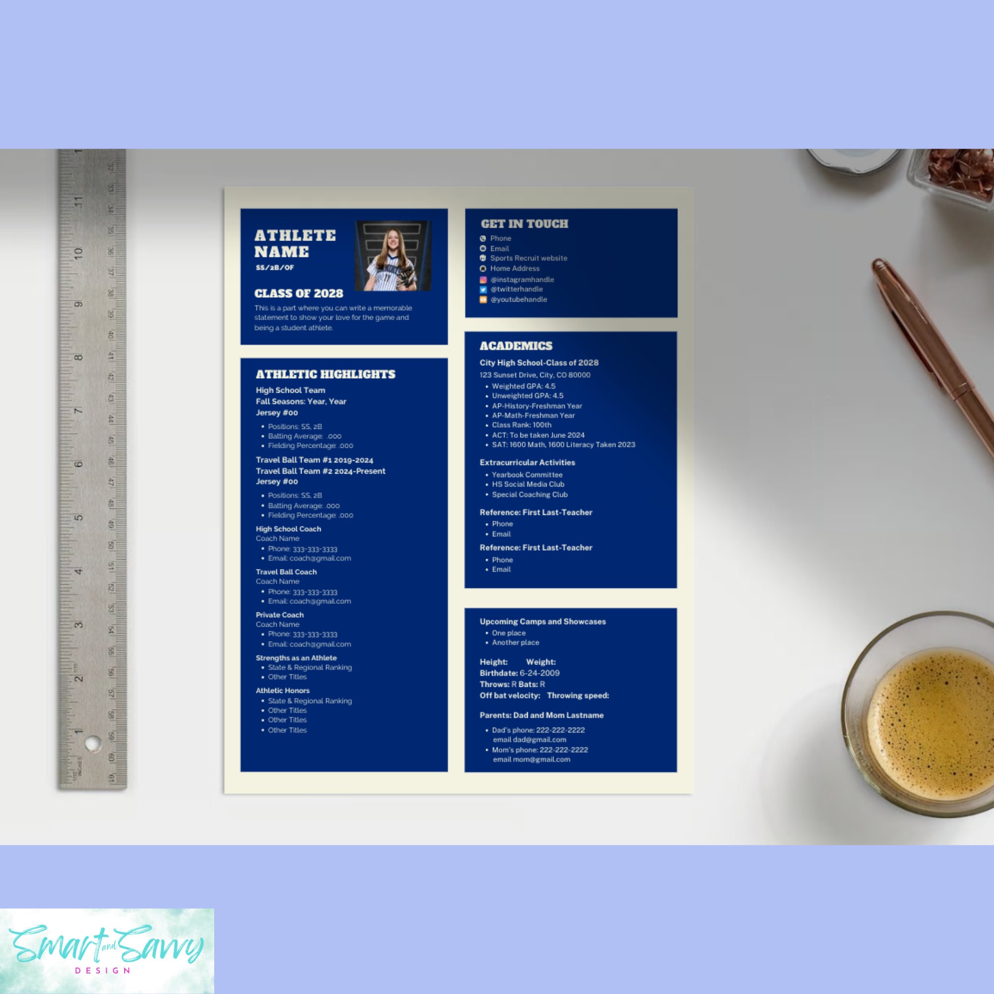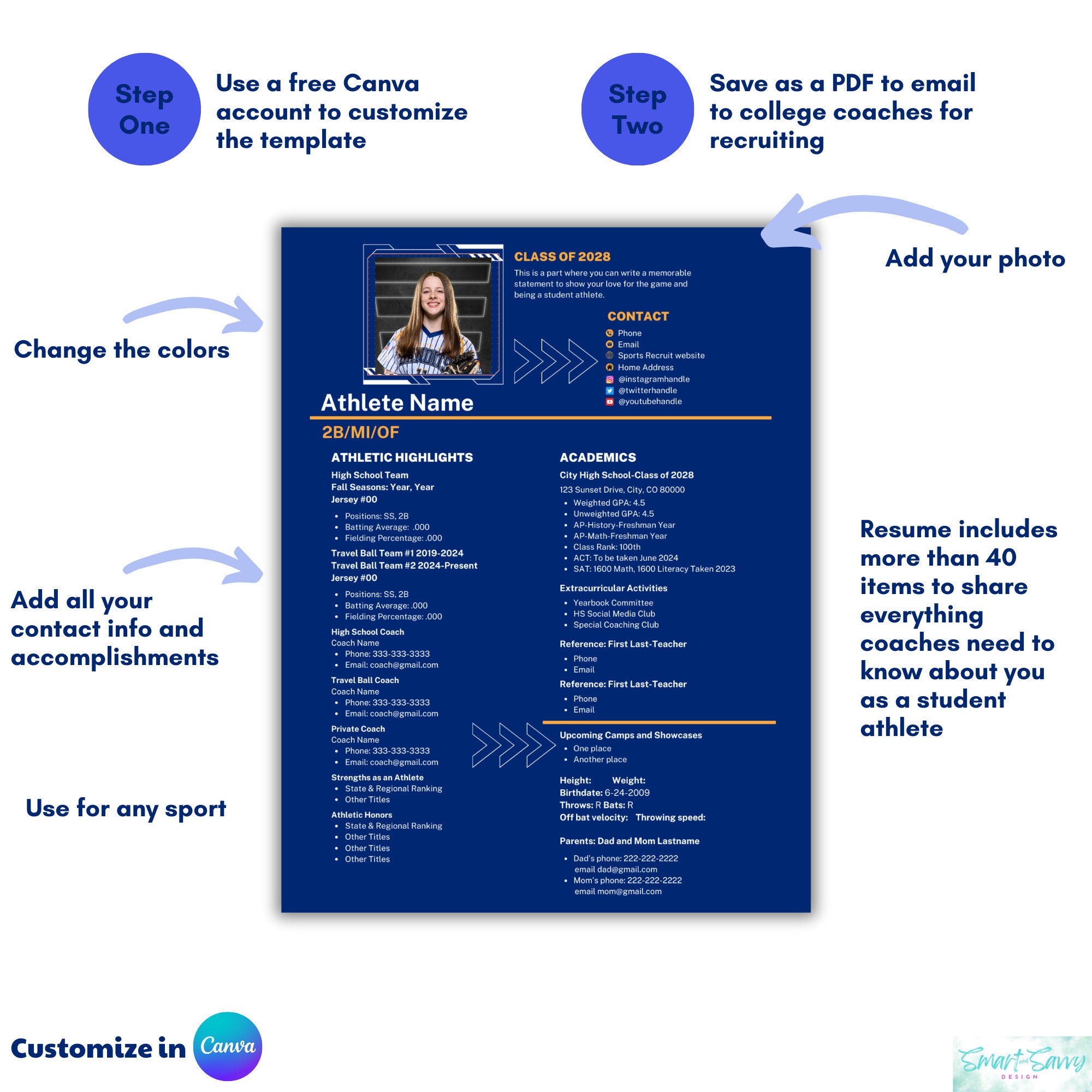 All sports Athletic Resume Template for College Recruitment Editable
