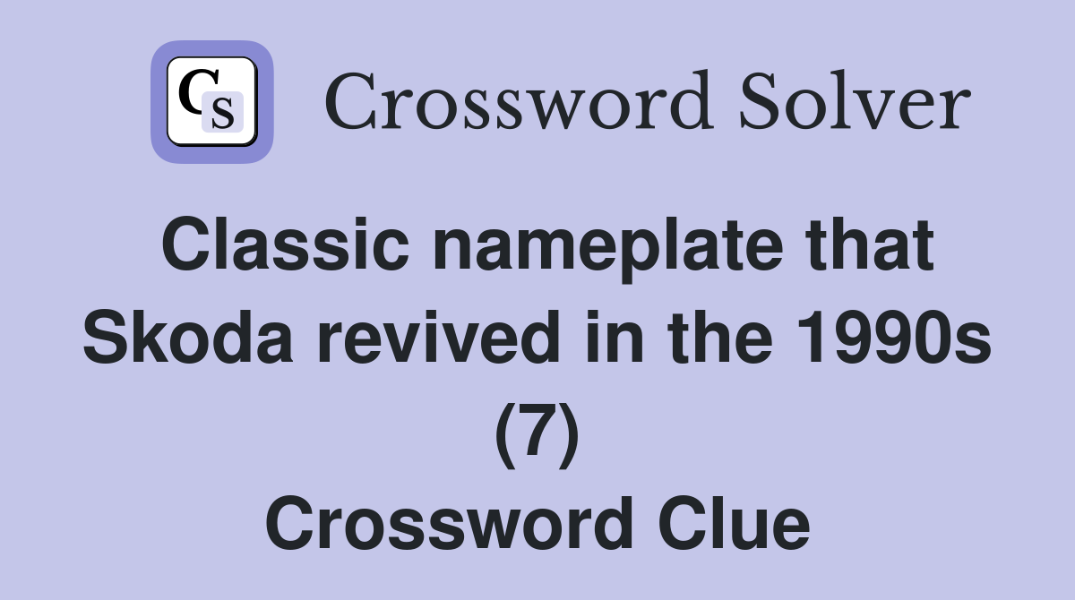 Classic nameplate that Skoda revived in the 1990s (7) Crossword Clue
