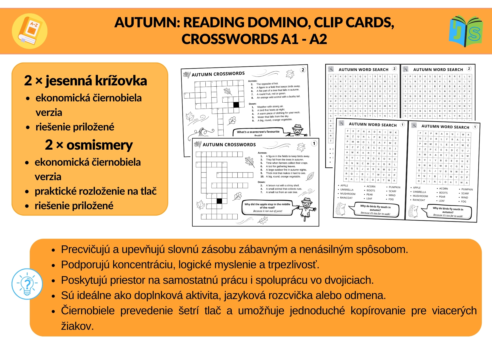 Autumn: Reading Domino Clip Cards CROSSWORDS A1 A2 Anglický jazyk