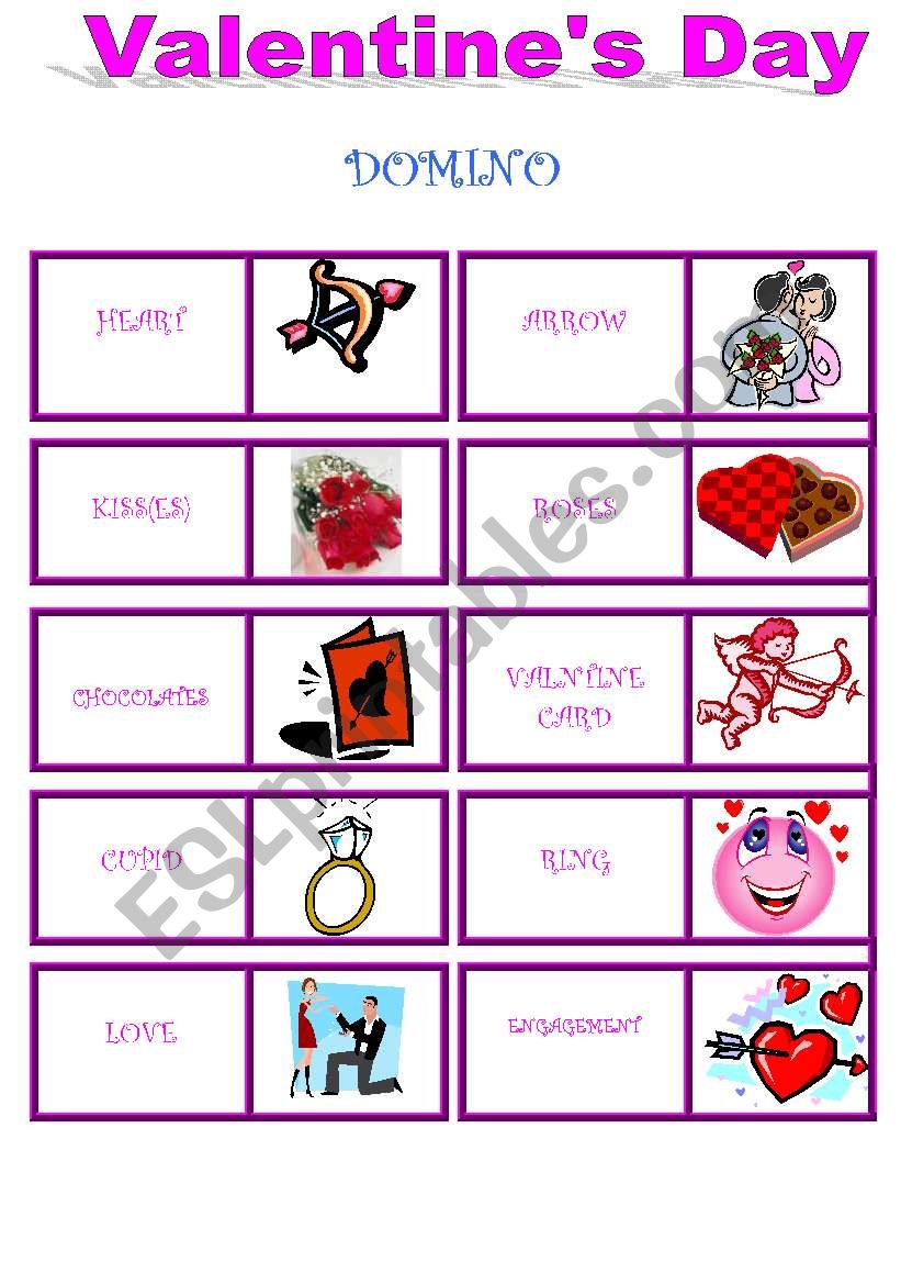 VALENTINE´s DAY 2 pages DOMINO CROSSWORD ESL worksheet by lobeni