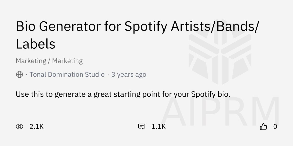 Prompt quot Bio Generator for Spotify Artists/Bands/Labels quot by quot Tonal