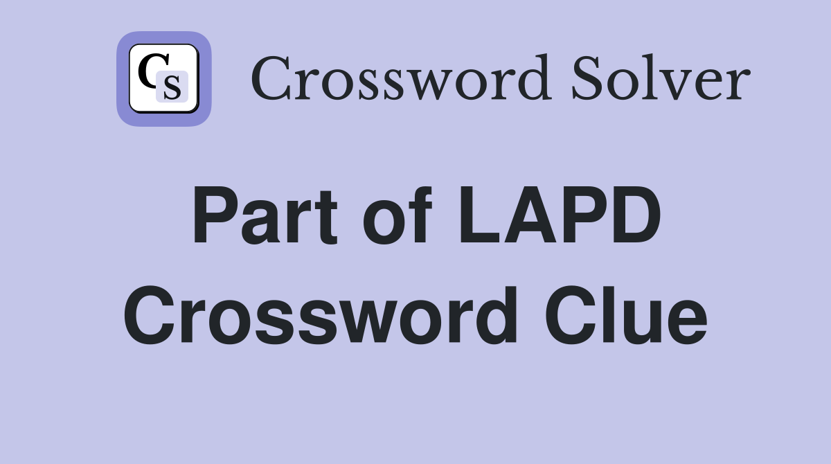 Part of LAPD Crossword Clue Answers Crossword Solver