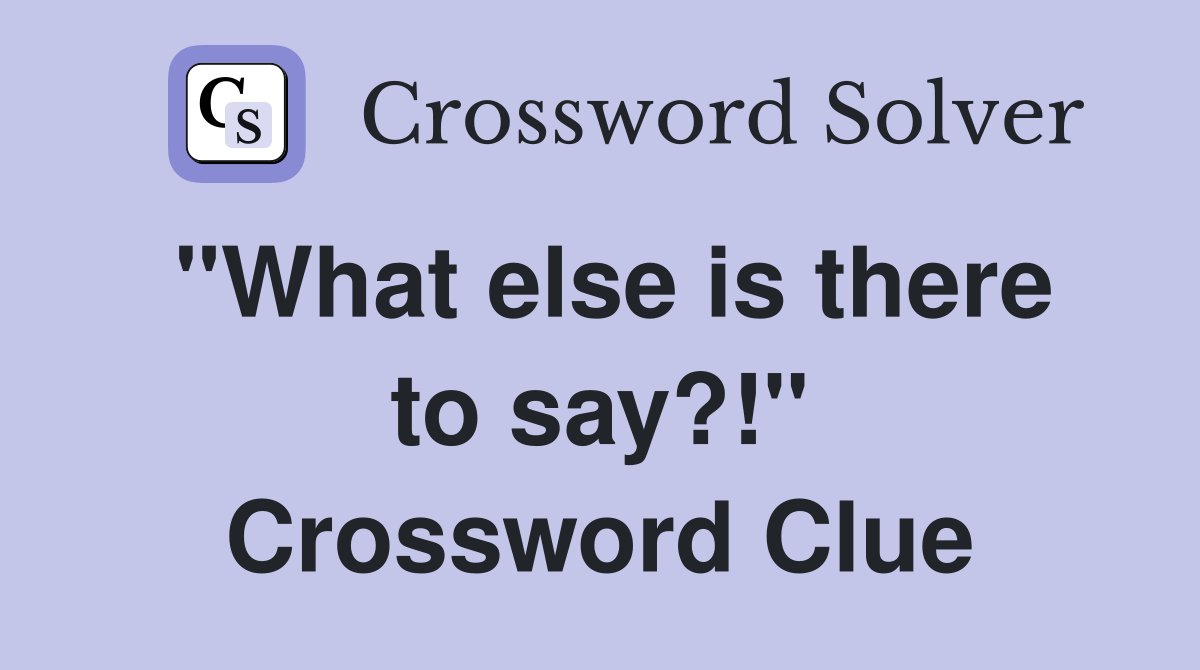 quot What else is there to say? quot Crossword Clue Answers Crossword Solver